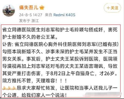 最近杭州的护士爆料事件可是闹得沸沸扬扬的,咱们得好好聊聊这事儿。你有没有听说,一位杭州护士在社交媒体上曝光了医院内部的种种不为人知的事情?这可不仅仅是简单的医疗纠纷,背后还隐藏着不少让人深思的问题呢。